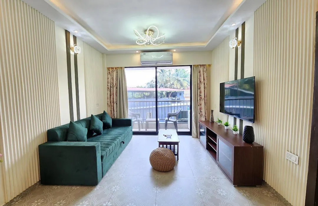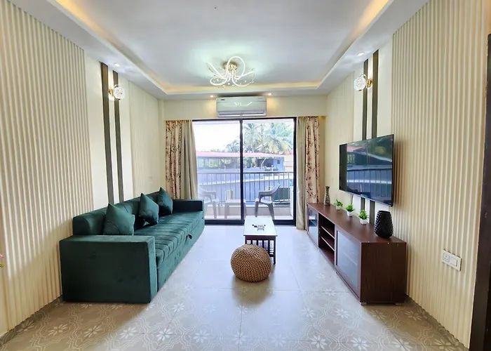 Das 64 m² große Candolim 1Bhk Designer Apartment With Pool And Gym Near Beach North Goa liegt 3 km weit weg vom Tibetan Market, Baga Road und bietet WLAN für Geschäftsreisende und Urlauber. Das Apartment liegt etwa 10 Autominuten vom Kalangat entfernt und bietet einen Blick auf den Innenhof.